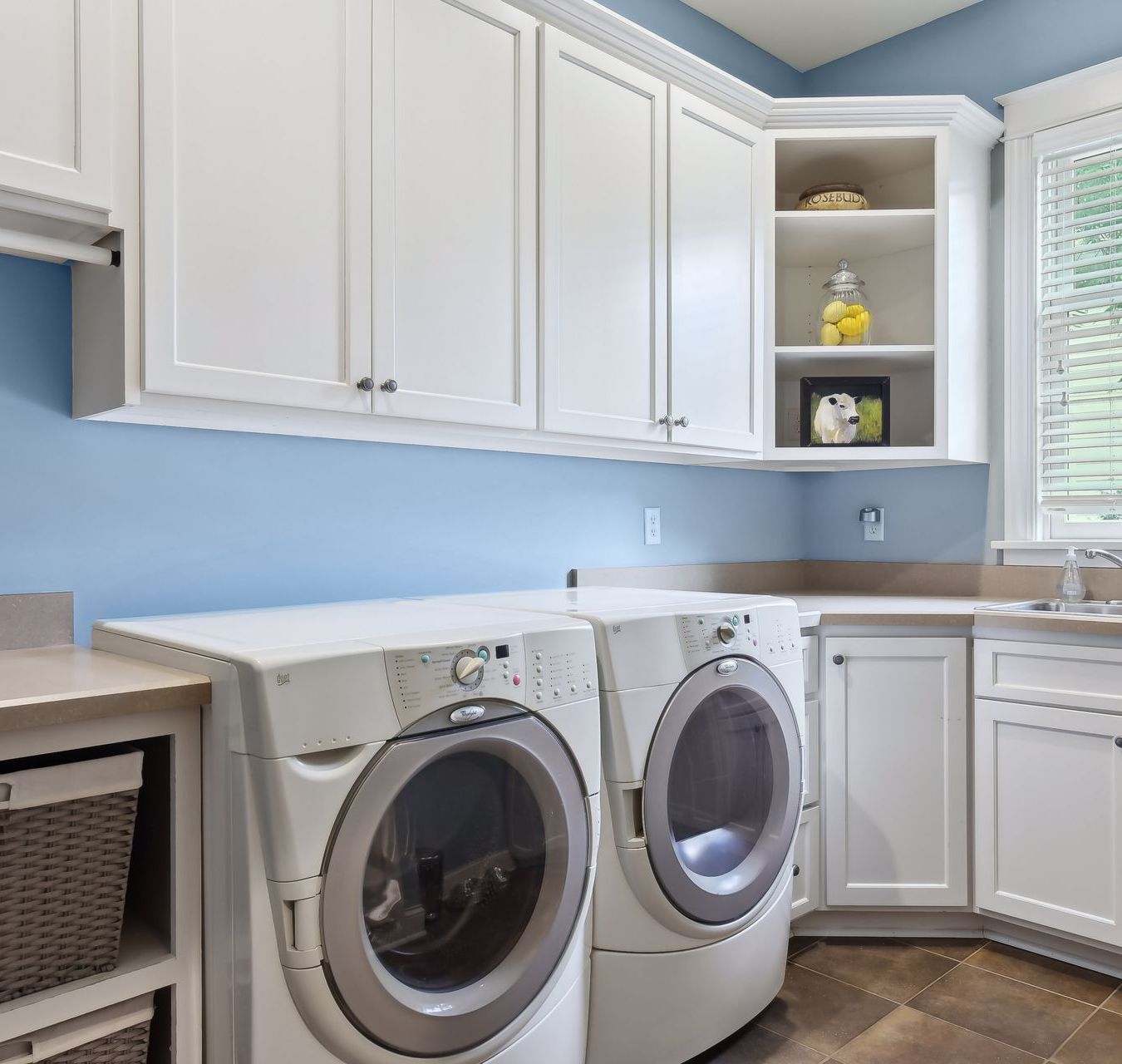 A perfect blend of Alder and Enamel, the kitchen features top-of-the-line appliances, ample counter space, granite, marble, subway tile and a center island that invites gatherings. Love, LOVE the walk-in pantry!
