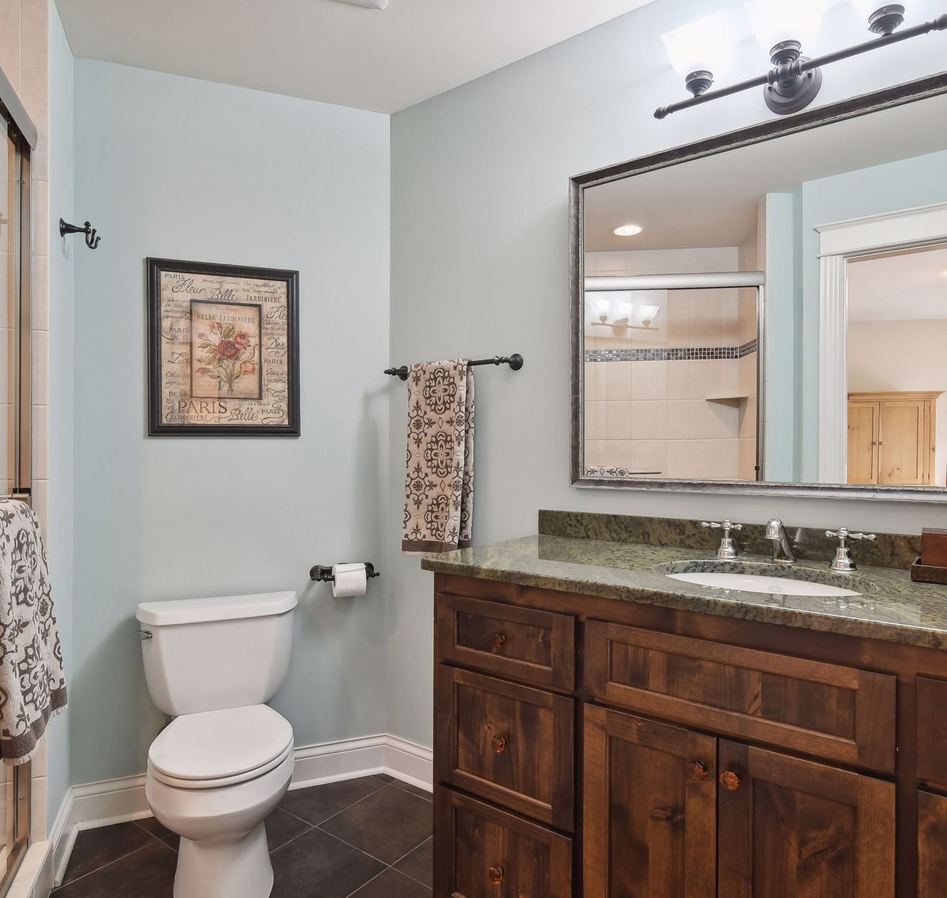 Equally important is for your guests or family members to share in your comfort! Three additional generously sized upper level bedrooms with walk-in closets and en-suite baths allow for hassle free readiness and privacy. Two bedrooms share a full sized jack & jill with separate bath and stool room, and one bedroom has a beautiful and dedicated 3/4 bath.